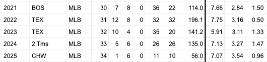 I thought this detail might be helpful because it is so stark. And it is often equally stark with pitchers in their best or worst years.