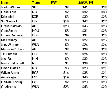 I thought it would be fun at this early date to see who the most profitable players were.